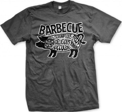 Barbecue Pig Parts Men's T-shirt, Tasty, Yummy, Delicious, Heavenly, Succulent, Scrumptious, Parts of Pig BBQ Design Men's Tee (Charcoal, Large)Click for Pricing & Details